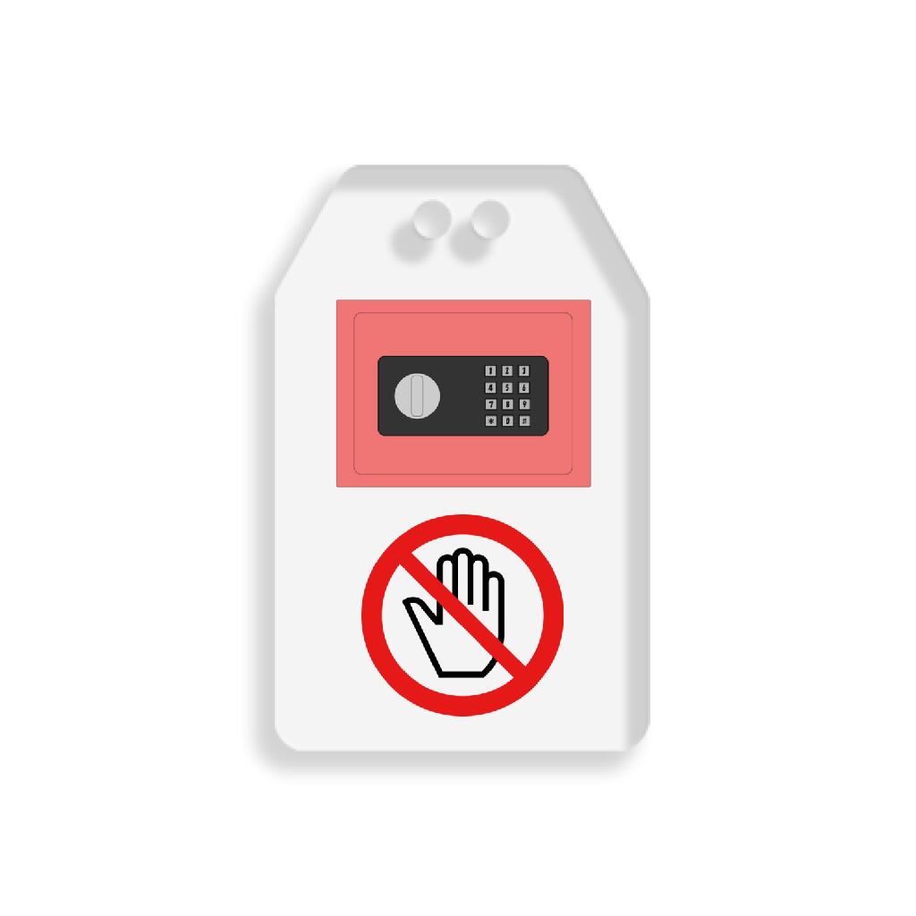 小型金庫のイラストを装飾したお守りです。危険な接触を避けるようなイメージでお障り禁止のマークも付け加えてみました。