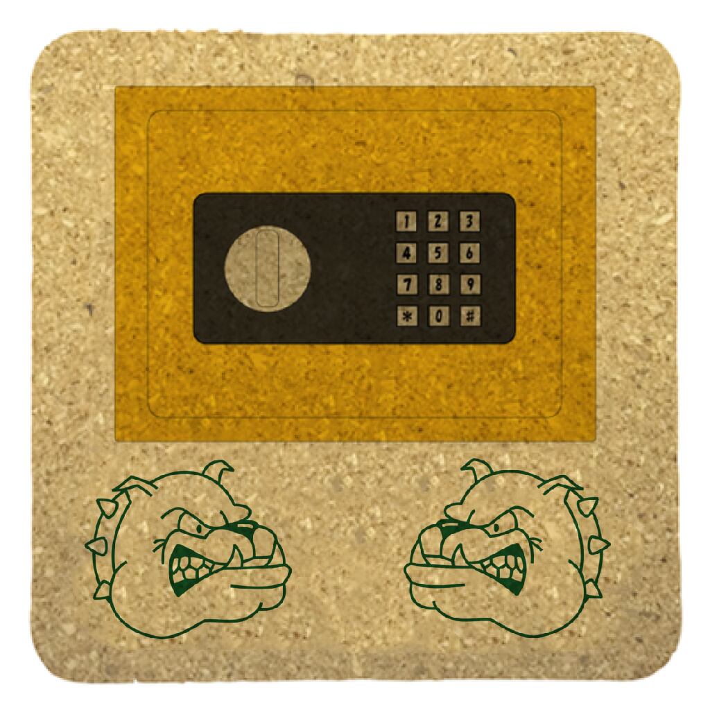 自作したイラストのコースターです。金庫の手前に番犬のスタンプを追加して守りを強固にしたイメージのデザインに仕上げました。気に入って使用してもらえると嬉しいです。